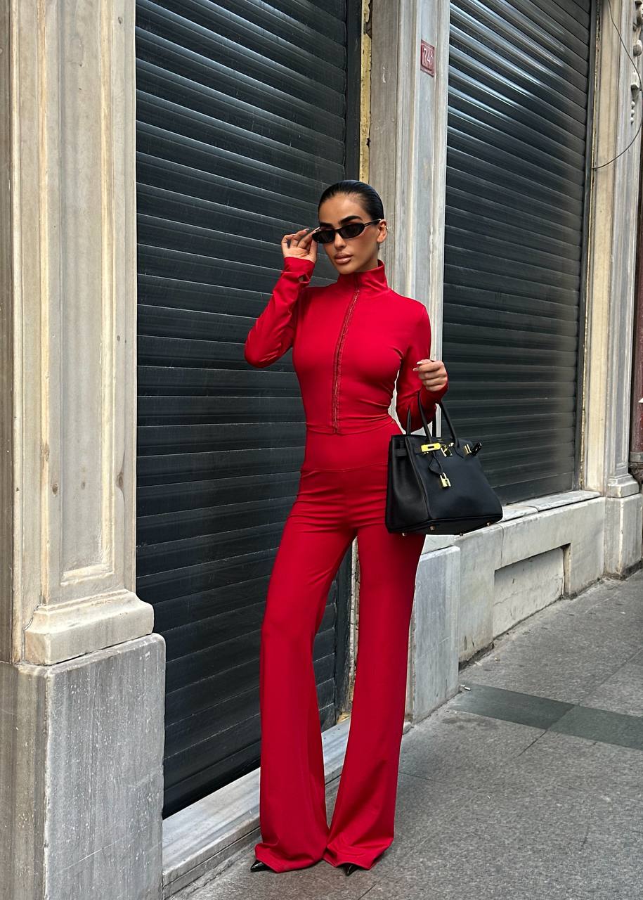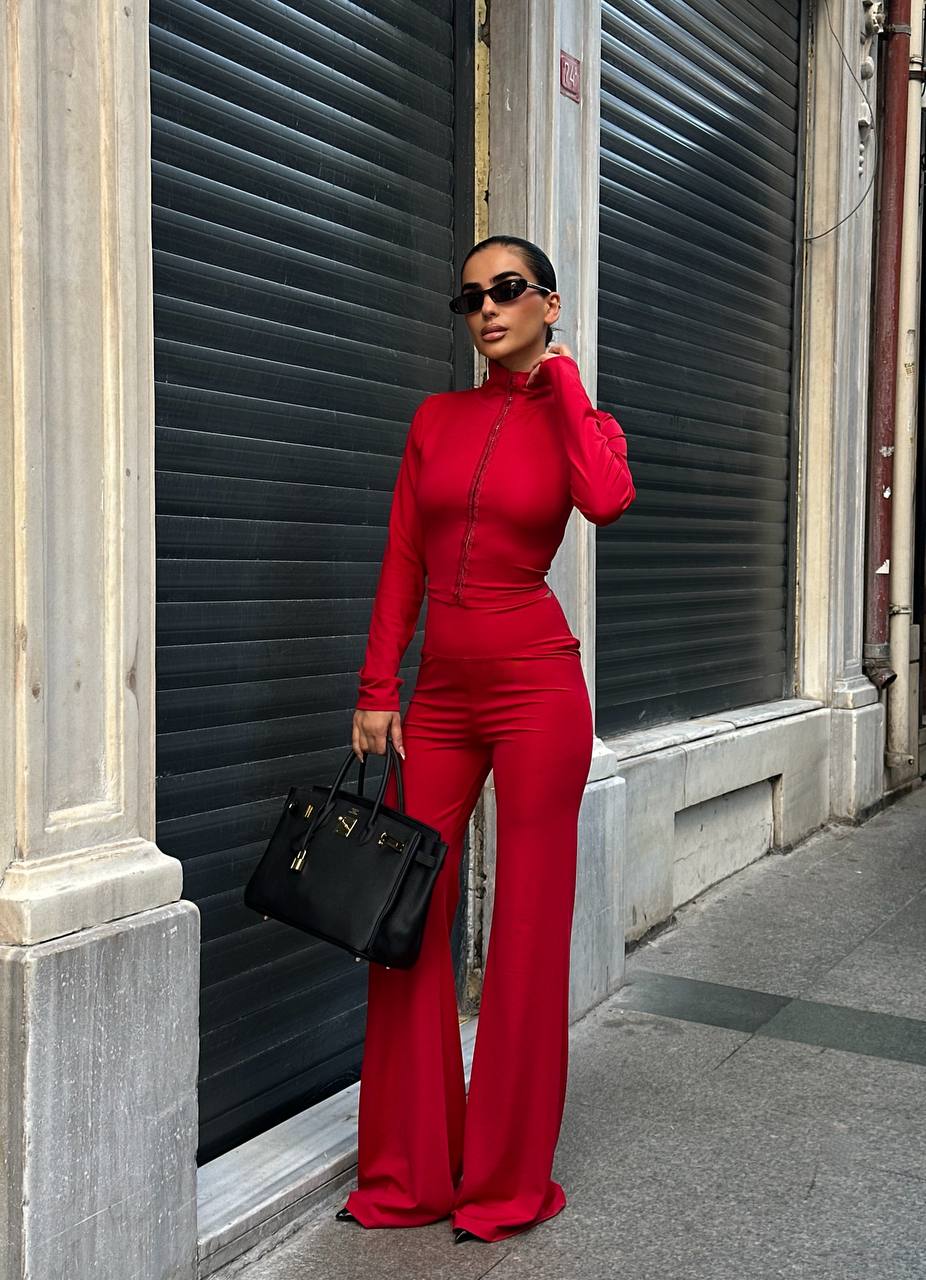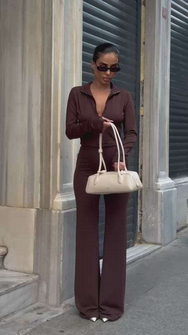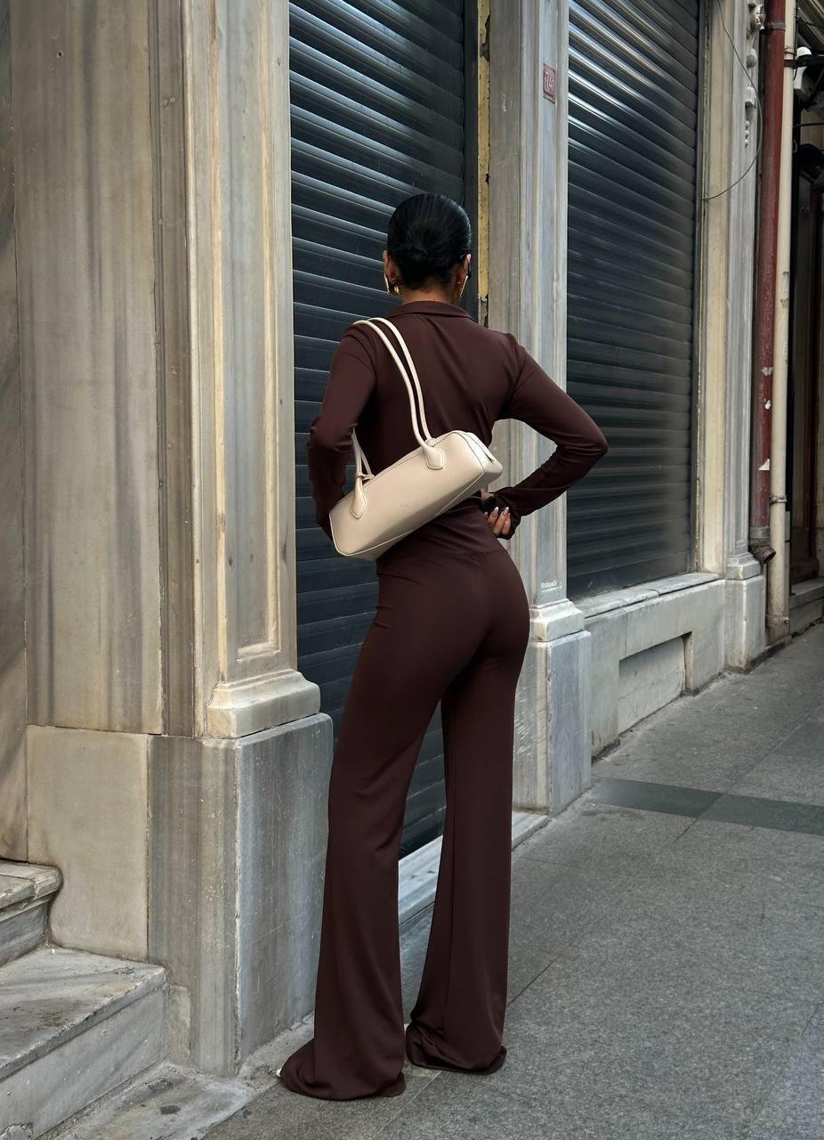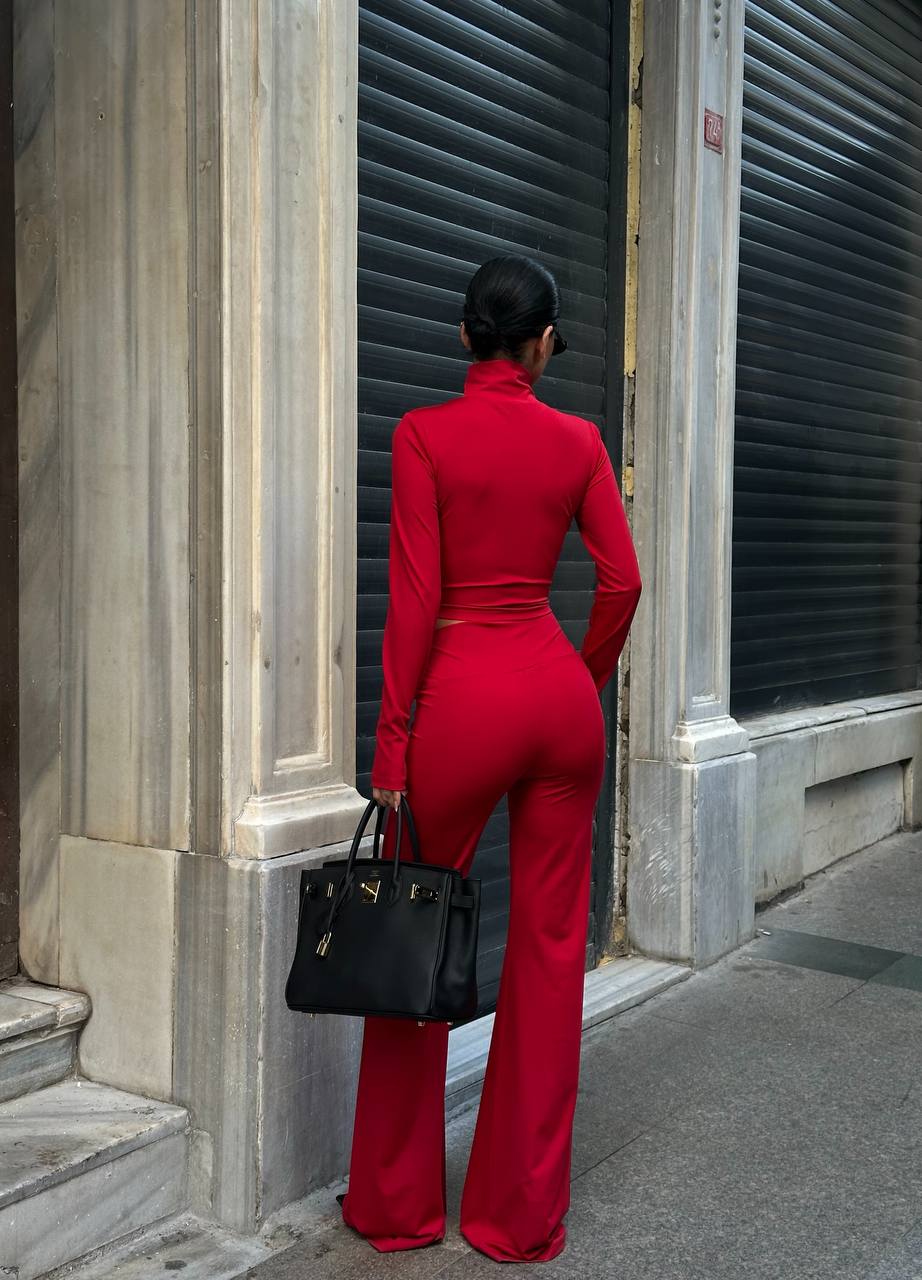 Fit & Style: Form-fitting top enhances curves, while the flared trousers create a balanced, elongated look. Designed for a clean, seamless aesthetic — effortlessly styled with heels or boots for a refined appearance.