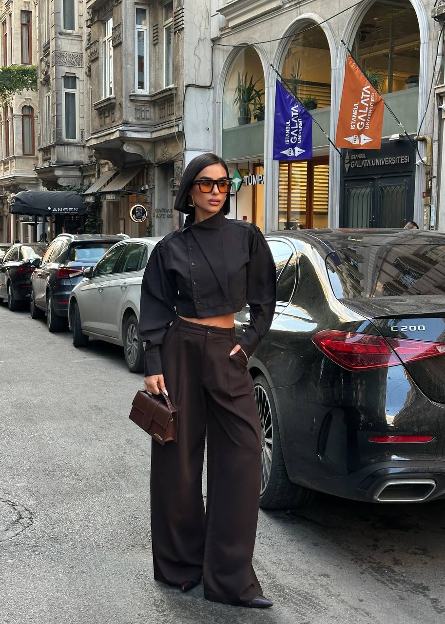 Design & Features: The Urban Edge Cropped Blouse is defined by its sharp tailoring and architectural silhouette. Featuring a high neckline, subtle puff shoulders, and a distinctive asymmetric front panel, this cropped design delivers a bold yet refined statement. Clean lines and a structured waist create a polished, fashion-forward look that elevates everyday styling.