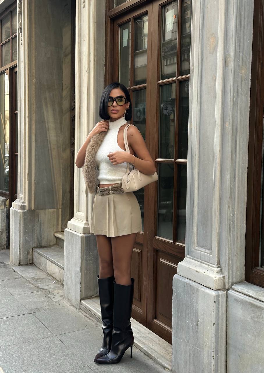 Design & Features: The Urban Poise Mini Skirt features a clean, high-waist silhouette with soft pleated detailing that creates natural movement and a polished finish. The structured waistband enhances the waistline while the mini length keeps the look modern, confident, and versatile. A timeless design that balances elegance with everyday wearability.